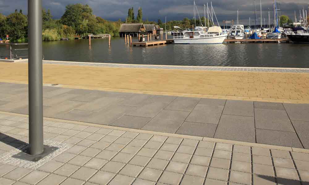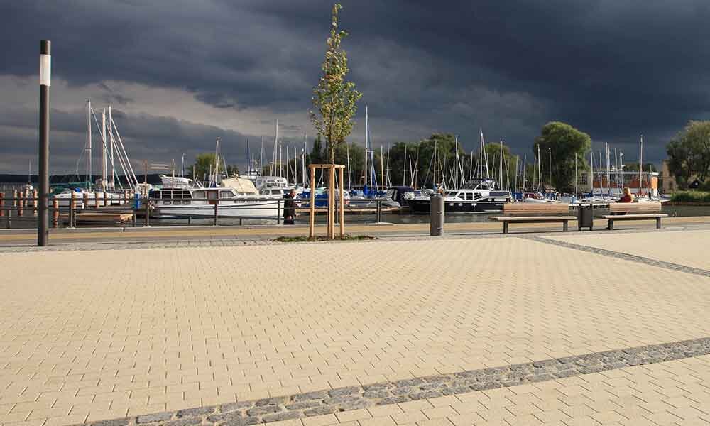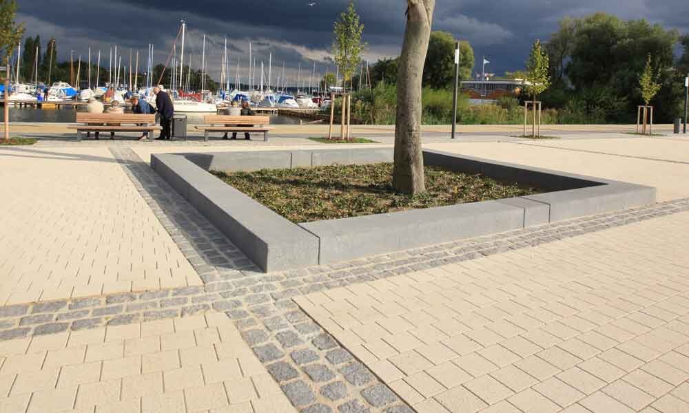 Die Schlosspromenade folgt dem Burgsee und gibt an der einen oder anderen Stelle einen wunderschönen Blick auf das Schweriner Schloss frei. Mit der Anlage dieses Weges wurde ein weiterer Schritt zur Steigerung der Attraktivität der wassernahen Flächen getan. Die Promenade ist mit einem eleganten Pflaster mit gelblichem Natursteinvorsatz versehen, deren Fläche durch dunkle Steinreihen kontrastreich unterbrochen wird. Hierdurch entsteht eine gewisse Lockerheit. Große Pflanzinseln schaffen als grüne Oasen einen zusätzlichen Hingucker.