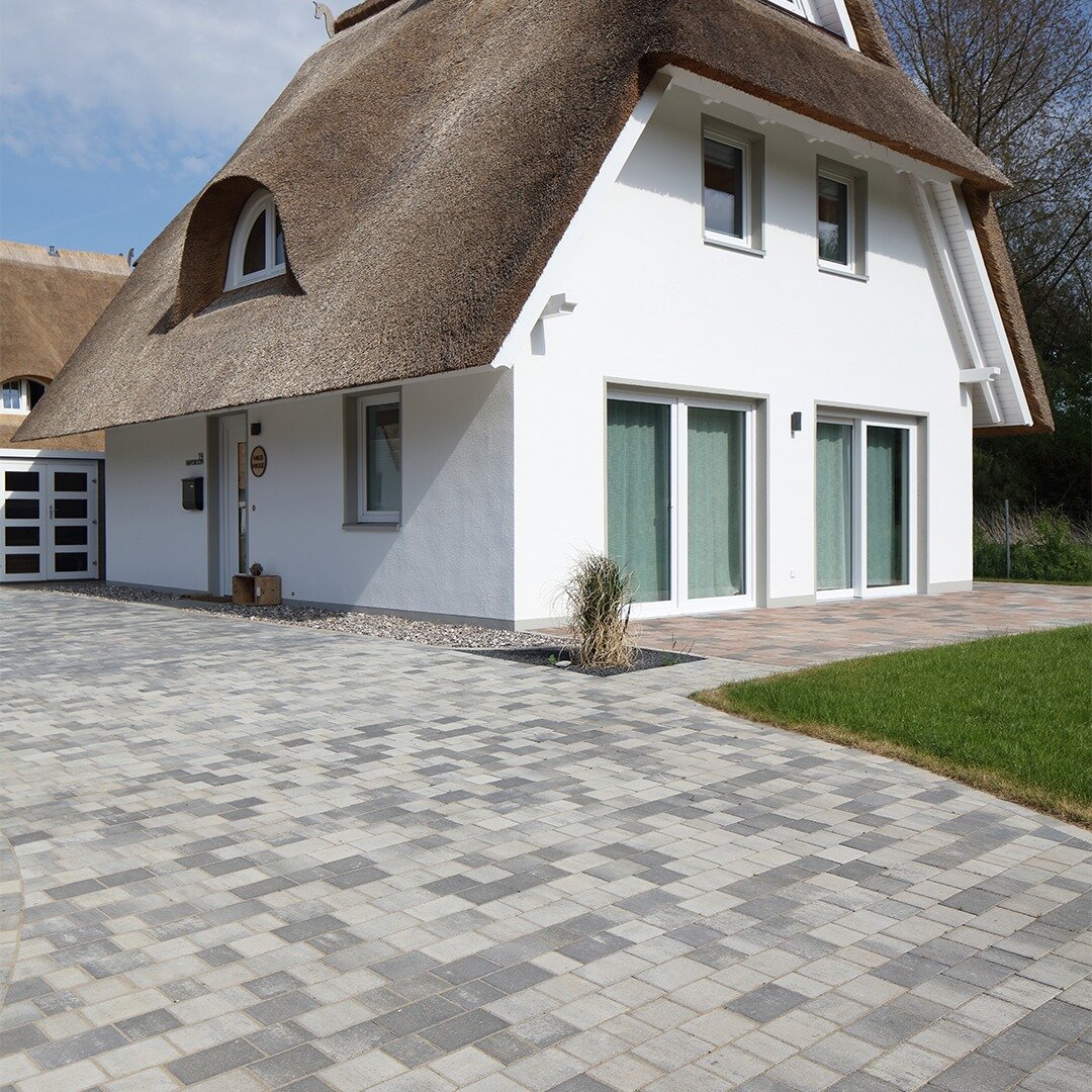 Die Fläche sowie die Terrassen der Anlage wurden mit unserer Carta Selection in Titan und unserer Pharo Selection in Ziegelbrand verlegt.
