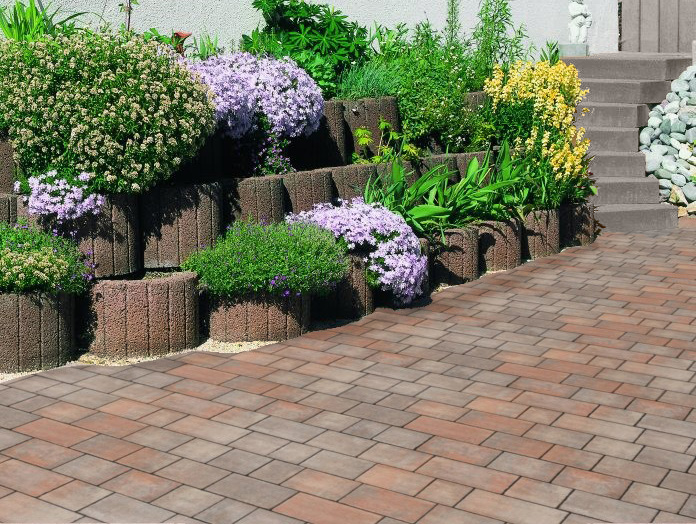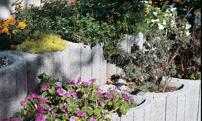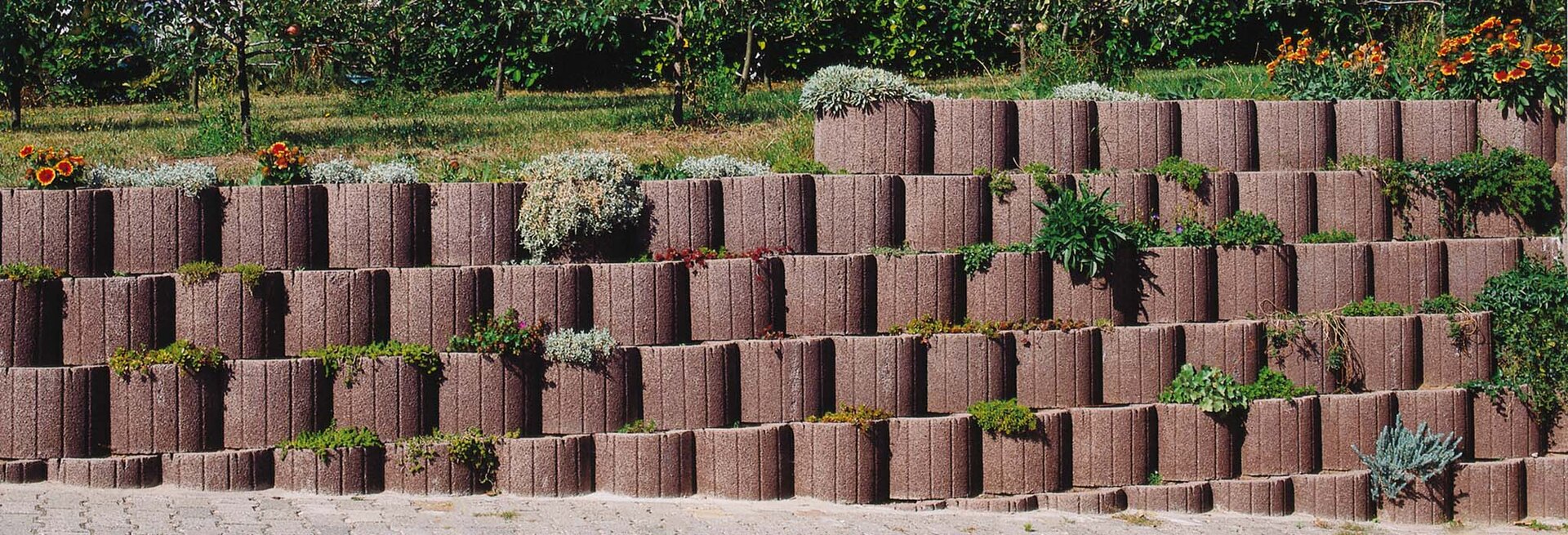 Florwall Pflanzsteine aus Beton zur Verfügung machen eine Begrünung von Böschungen und Hängen möglich. Sie dienen als Hangbefestigung und Pflanzelement zugleich. Ihre runde Form ermöglicht eine optimale Anpassung an jeden beliebigen Böschungsverlauf. Eine Verbundkehle sichert das Ineinandergreifen nebeneinander liegender Pflanzsteine und schafft so zusätzlich Stabilität. Die Steine sind in zwei Größen Mini und Maxi verfügbar.