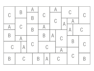 Lebendige Zierverbände lassen sich mit dem Mühlenpflaster leicht realisieren. Drei Steingrößen, ein Quadratformat und zwei Rechteckformate, können beliebig miteinander kombiniert werden und eröffnen einen unermesslich großen Gestaltungsfreiraum.