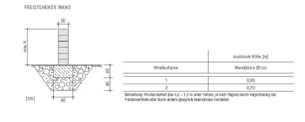 Maximal zulässige Mauerhöhen & Windlastzonen