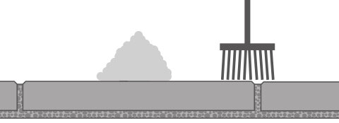 TIPP: Ein häufiger Einbaufehler ist die Verwendung eines Bettungsmaterials aus Splitt der Körnung 2 bis 5 mm und eines Fugenmaterials aus Sand der Körnung 0 bis 2 mm. Durch Belastung und Niederschlagseinwirkung rieselt das Fugenmaterial in die Bettung. Die Fugen leeren sich, was zu einem Stabilitätsverlust führt. Daher ist diese Materialkombination unbedingt zu vermeiden.