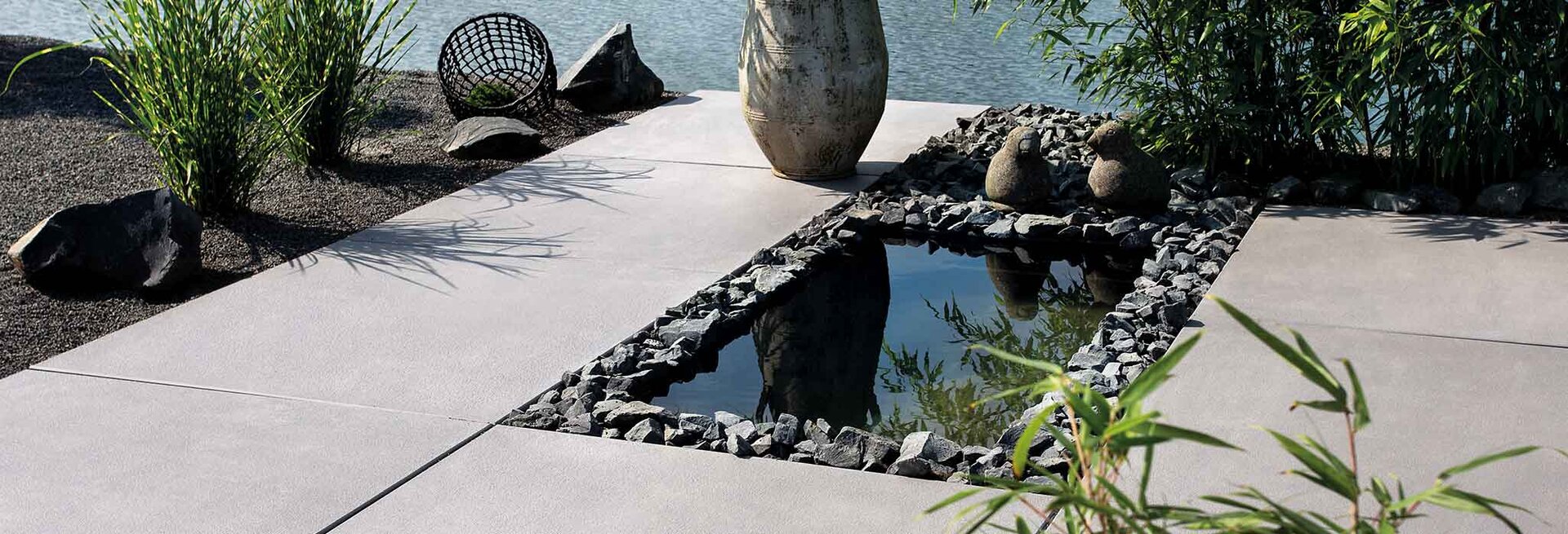 Schlichte Sachlichkeit im Zeichen von Modernität und Zeitgeist: Die Designlinie Sichtbeton pur. aus hochwertigem Sichtbeton setzt ein stilistisches Ausrufezeichen in einem modern geprägten Gestaltungsumfeld. XXL-Formate mit Maßen bis 100 x 100 erzeugen eine Einzigartigkeit, die mit Purismus überzeugt. Neben Terrassenplatten runden Stufen, Randplatten und Trapezplatten die Kollektion ab.