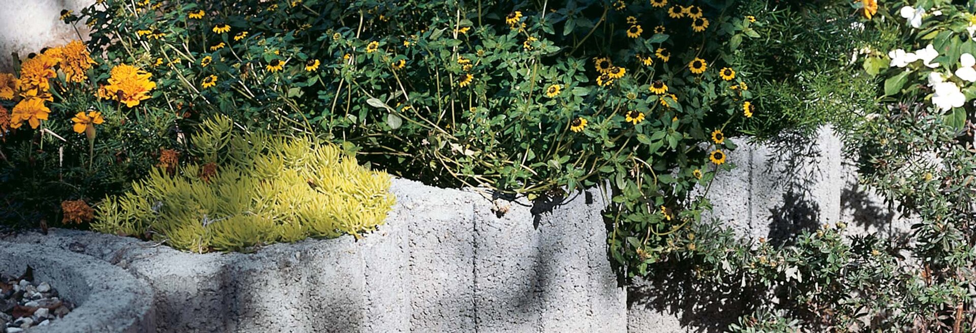 Florwall Pflanzsteine sind wahre Allrounder im Garten. Die kompakte Ausführung Mini ist handlich und ermöglicht die Errichtung einfacher Hangbefestigungen. Zugleich können die Elemente individuell bepflanzt werden und sorgen so für grüne Blickpunkte. Mit seiner Form und der modularen Verarbeitung eignet sich der Pflanzring für jeden beliebigen Böschungsverlauf. Eine Verbundkehle sichert das Ineinandergreifen der Hohlsteine und lässt stabile Gartenmauern entstehen. Die Steine sind in zwei Größen Mini und Maxi verfügbar.
