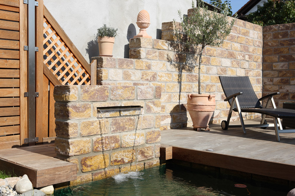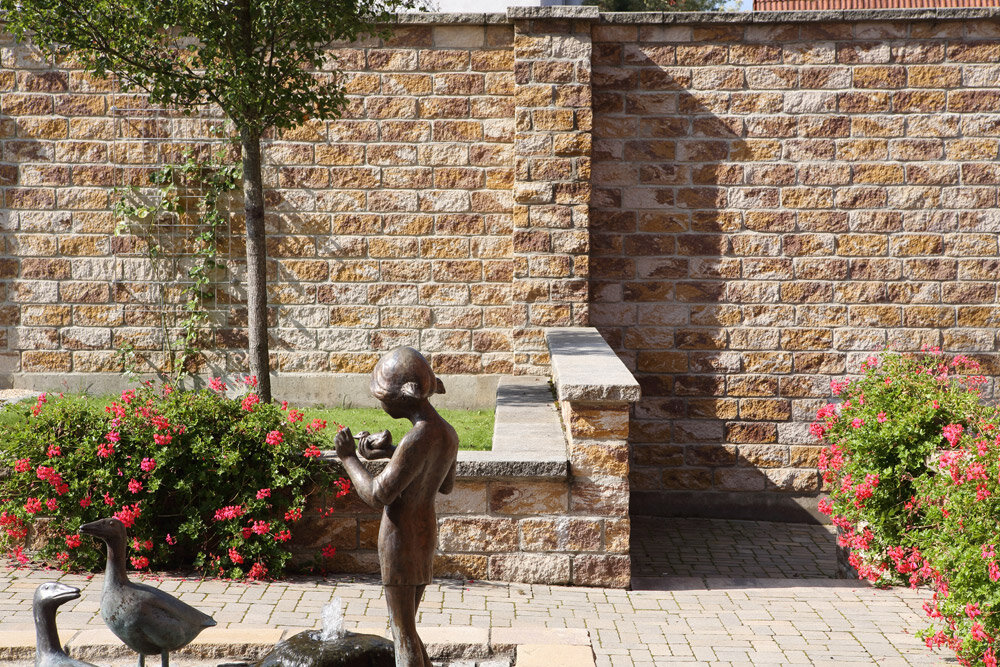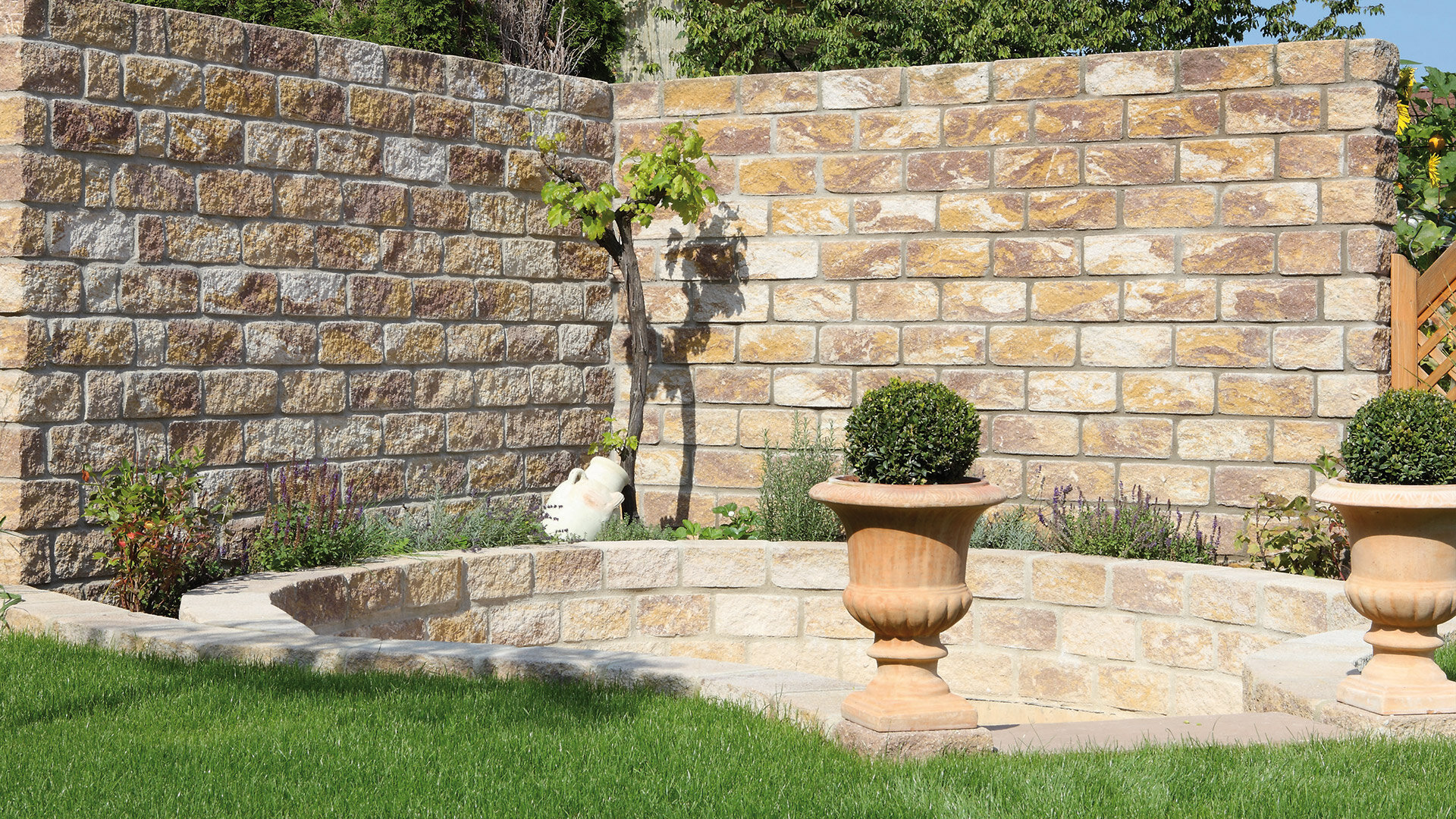 - Endsteine und Abdeckplatten für seitlichen und oberen Mauerabschluss