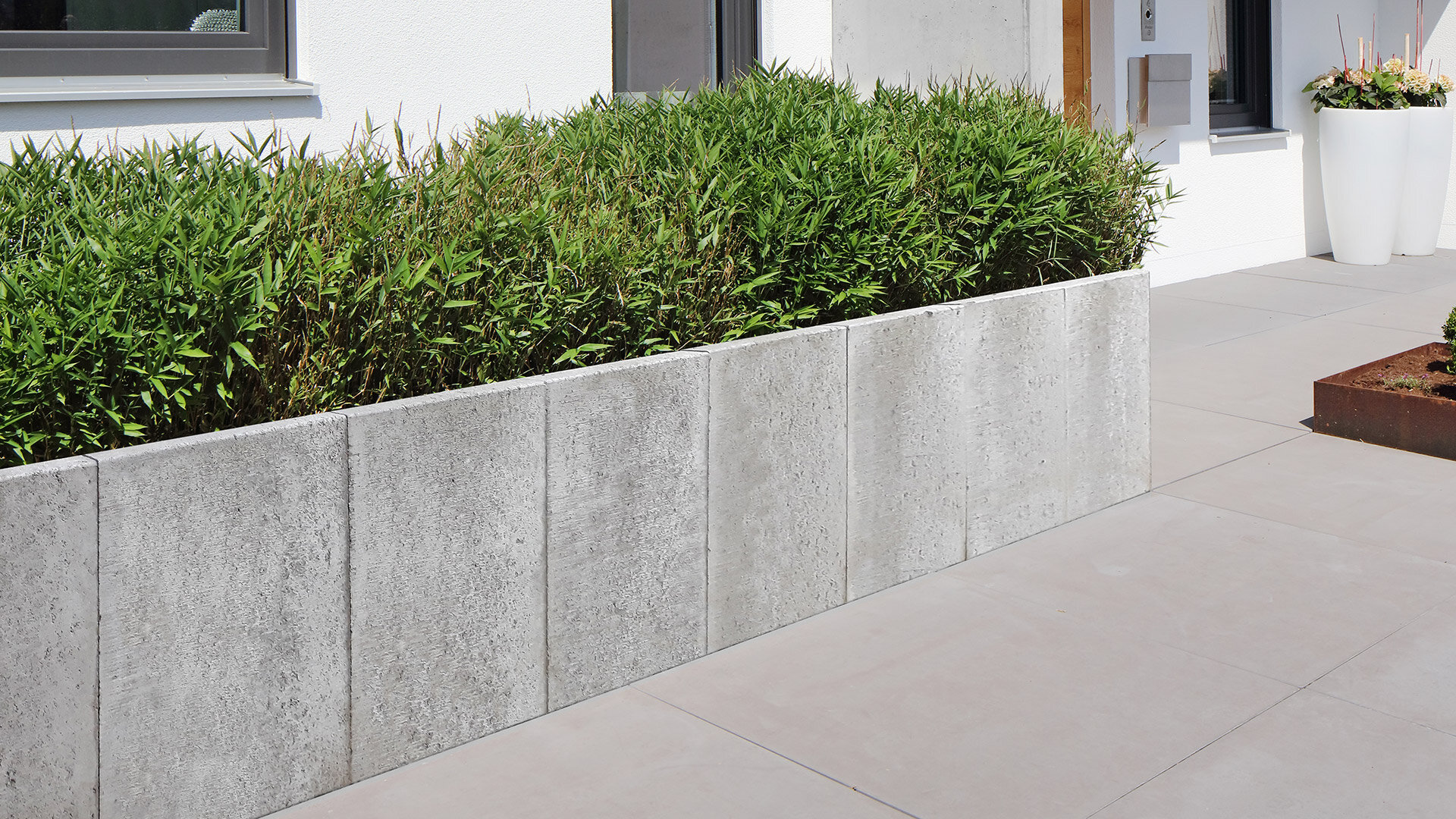 - Einfassung und Böschungssicherung: Die Steine sind geeignet für den Bau niedriger Einfassungen, um Erde oder andere Materialien im Garten oder in anderen Außenanlagen zurückzuhalten und Erosion zu verhindern. Sie sind zudem eine gute Wahl für die Sicherung von Böschungen geringer Höhe. Für Bereiche mit höheren Lastanforderungen eignen sich L-TEC Systemwinkel mit eingebauter Bewehrung.