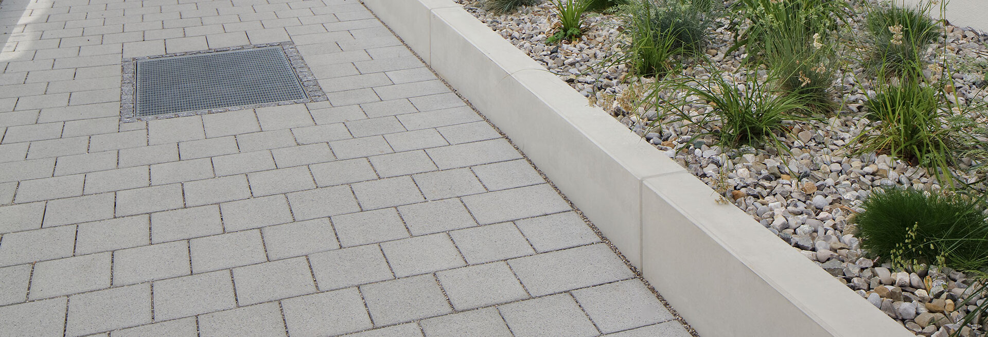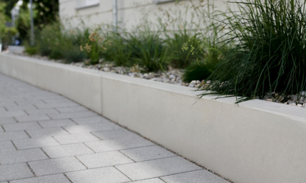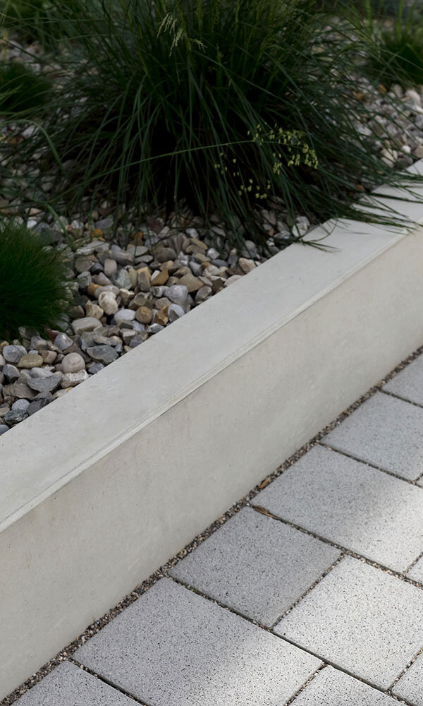 Das L-TEC Bord bietet eine ästhetisch schöne Funktionalität bei der Einfassung von Grün- oder Pflasterflächen - und dies im abgestimmten Stil der L-TEC Mauerscheiben.