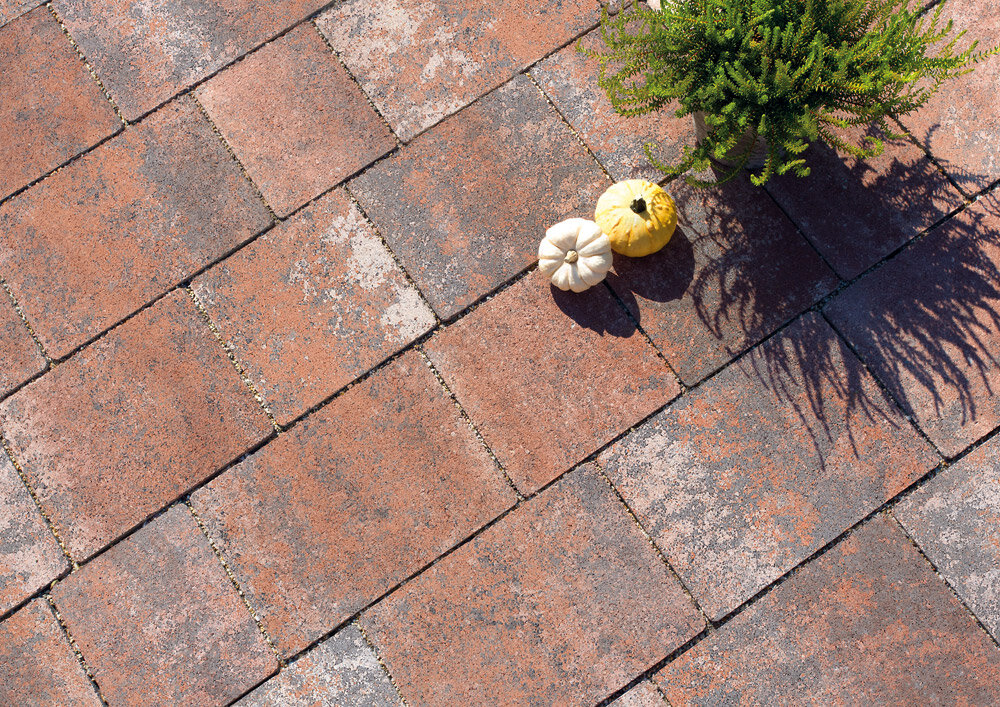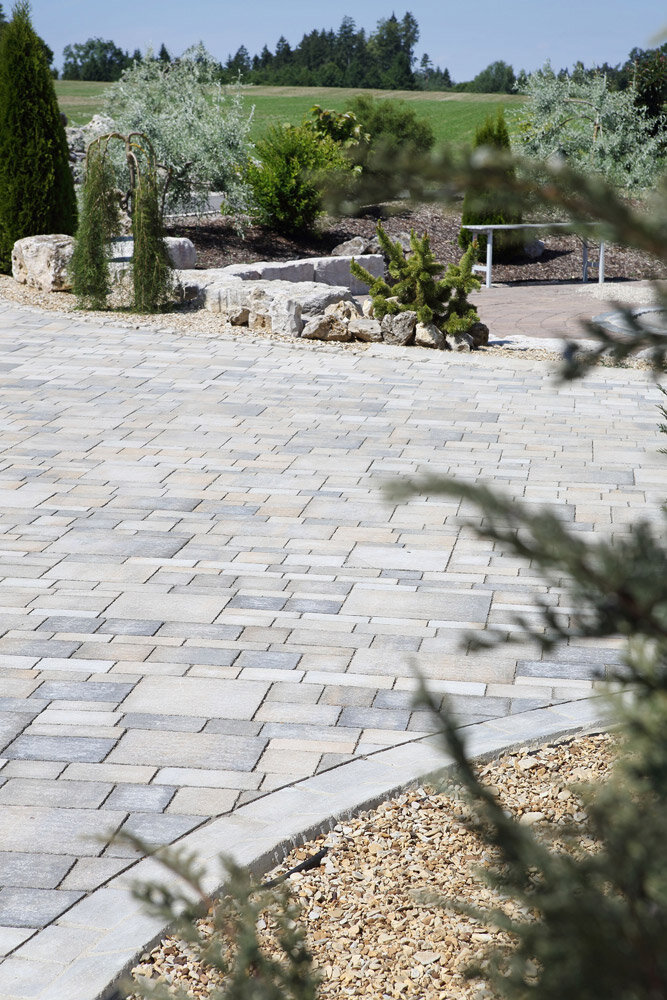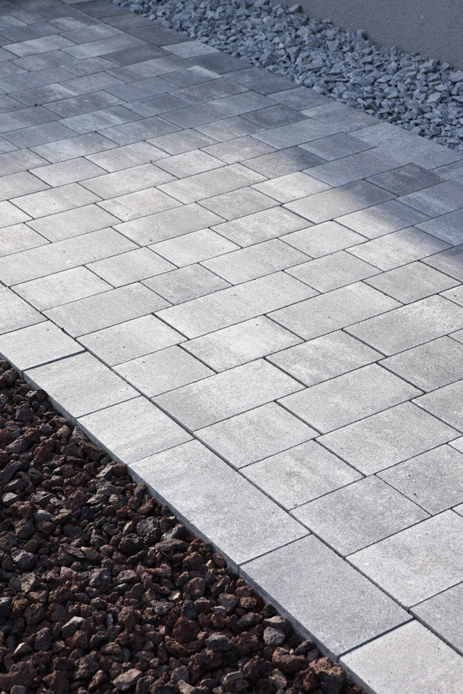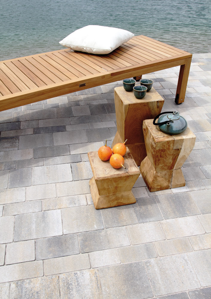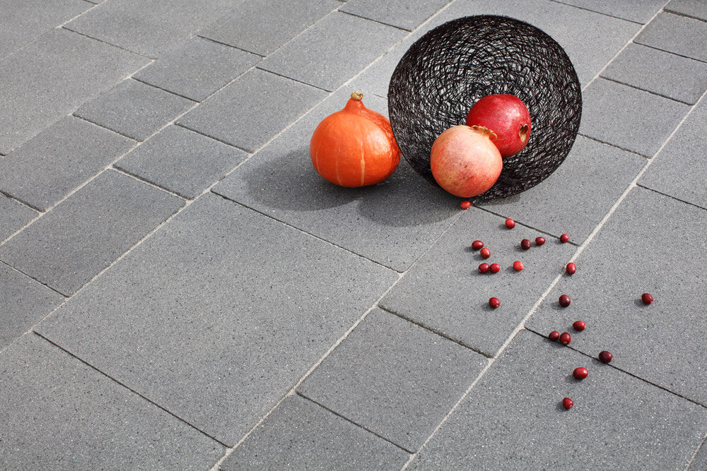 Der reizvolle Formatmix aus vier Steingrößen schafft Flächen großer Ausgewogenheit. Eine gewisse Lebendigkeit erzeugen hierbei die verschiedenen Steinlängen. Die ausgesprochene Geradlinigkeit der Formate wird durch die scharfe Kantenführung erreicht. Ein seitliches Abstandhaltersystem arbeitet als Verschiebesicherung und sorgt für eine hohe Flächenstabilität.