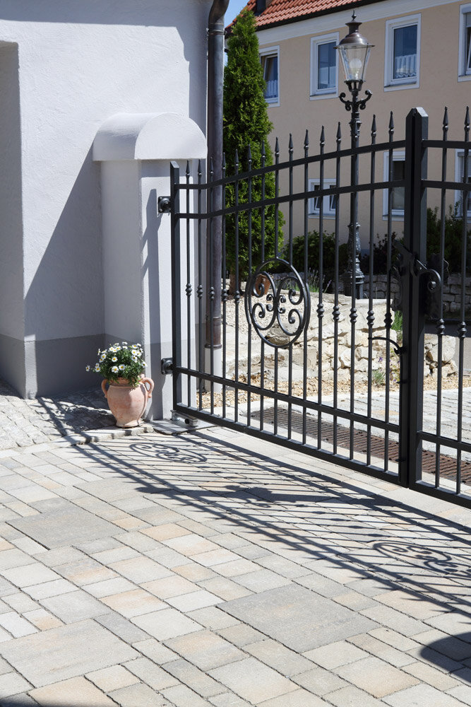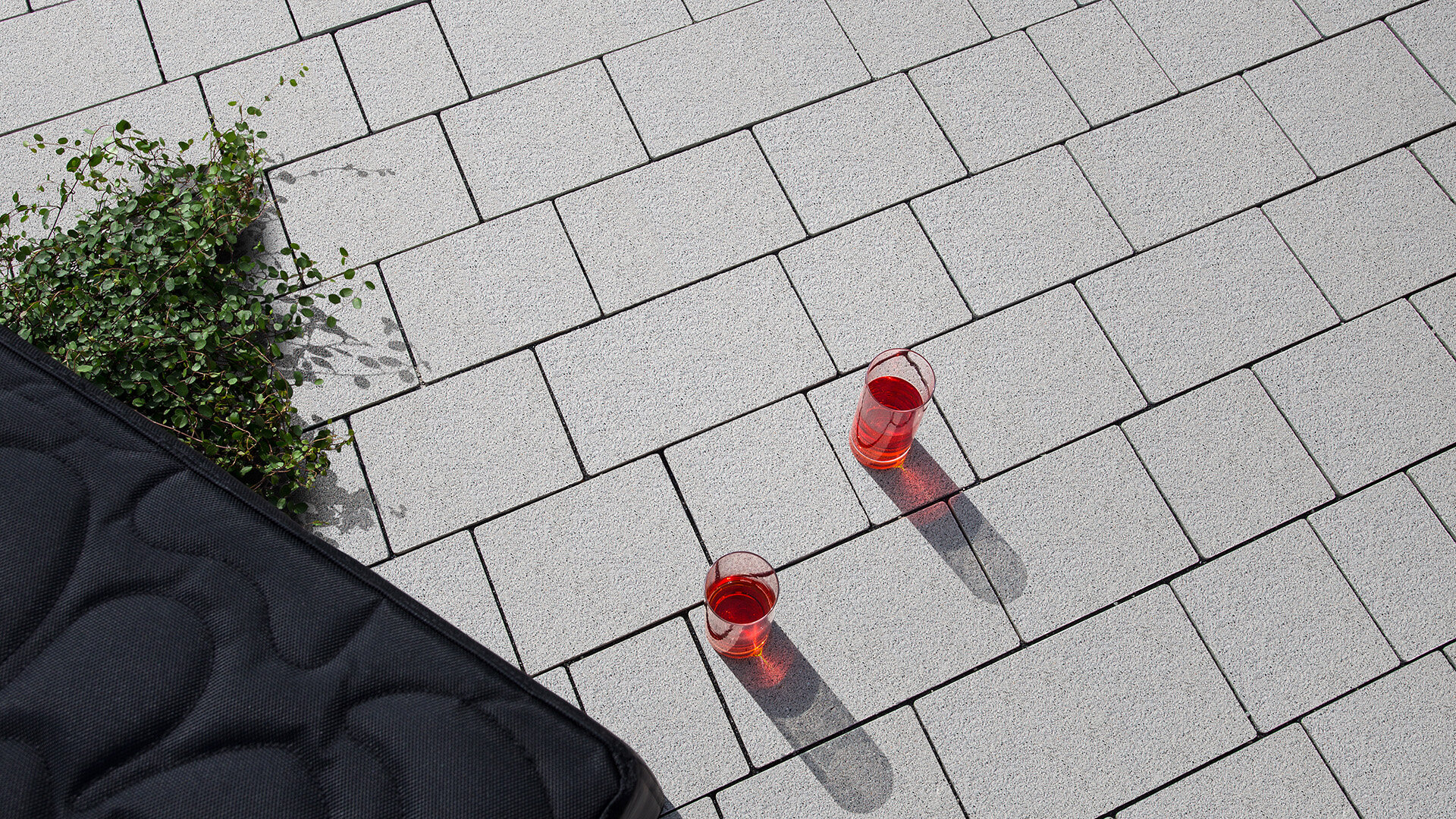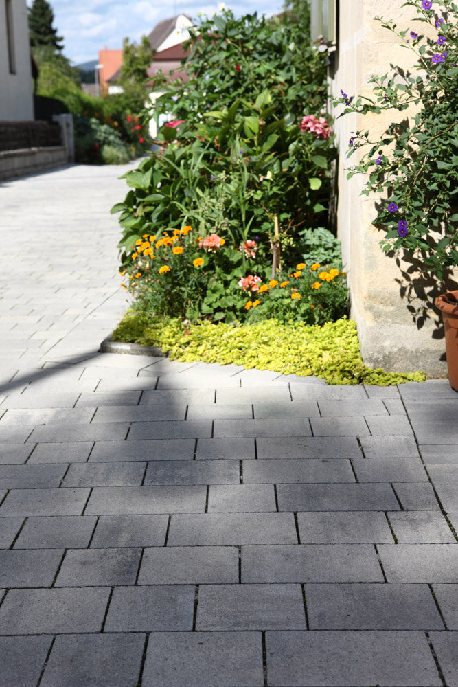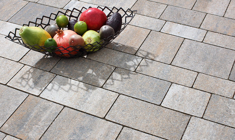 Der reizvolle Formatmix aus vier Steingrößen schafft Flächen großer Ausgewogenheit. Eine gewisse Lebendigkeit erzeugen hierbei die verschiedenen Steinlängen. Die ausgesprochene Geradlinigkeit der Formate wird durch die scharfe Kantenführung erreicht. Ein seitliches Abstandhaltersystem arbeitet als Verschiebesicherung und sorgt für eine hohe Flächenstabilität.