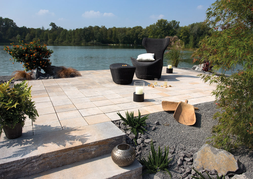 Nahezu unerschöpfliche Variationen bietet dieses Systempflaster. Zahlreiche Formate und eine große Farbauswahl lassen einen kreativen Spielraum bei der Gestaltung zu. Während die drei kleinen Formate gern gemischt miteinander verlegt werden, wirken die zwei größeren Formate besonders bei alleiniger Verlegung interessant.