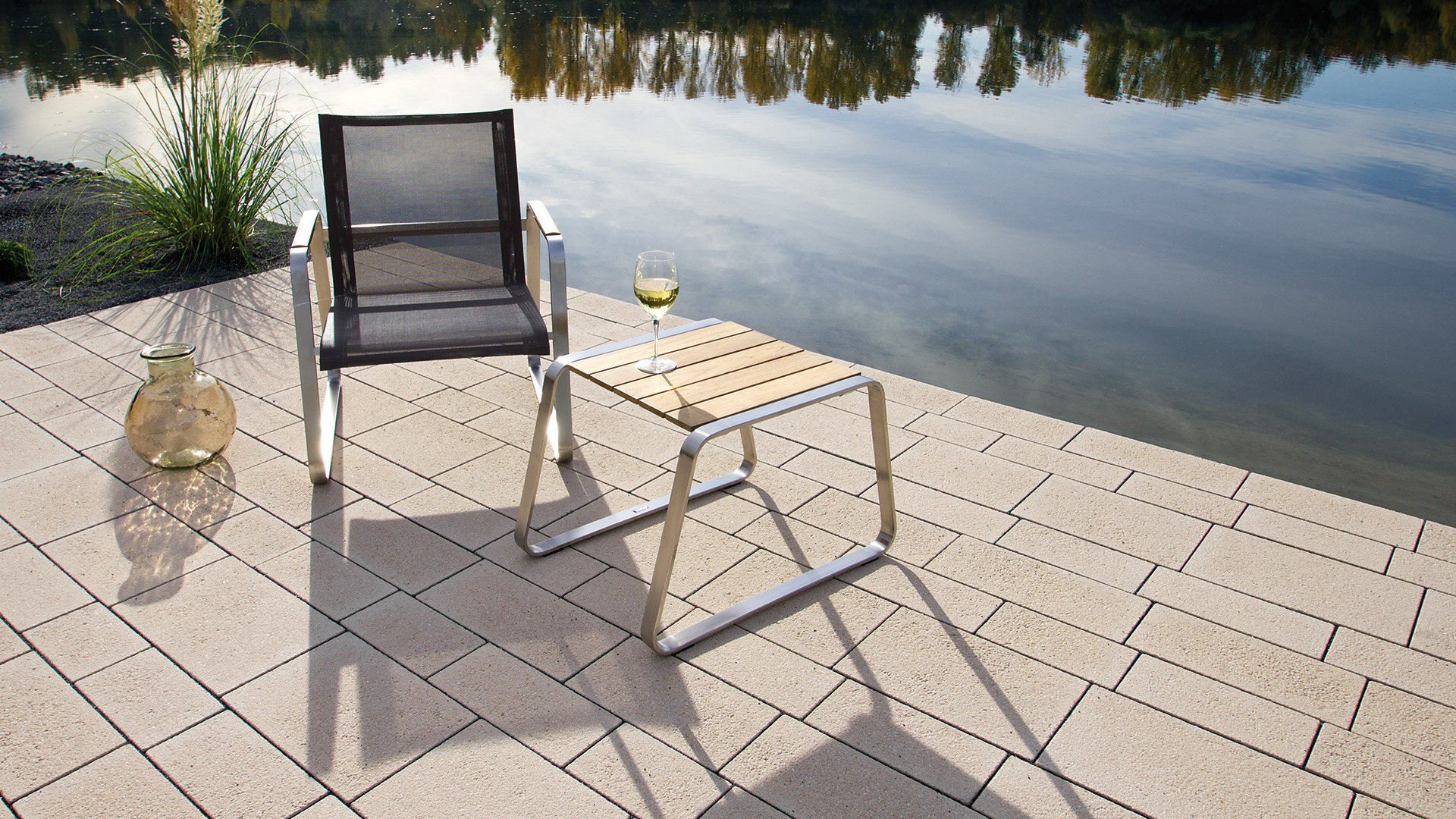 Klare Formensprache und ein edles Oberflächenfinish bringen Via Tagona in die Favoritenrolle, wenn es um exklusive und repräsentative Gestaltungen geht. Der Formatmix ist aus großen Einzelsteinen unterschiedlicher Reihenbreiten zusammengesetzt und führt in der Fläche zu einer großzügigen Untergliederung. Ein wirkungsvoller Oberflächenschutz schützt vor Verschmutzung und erleichtert die Reinigung.