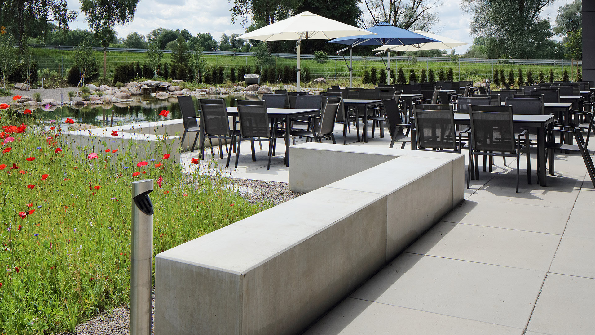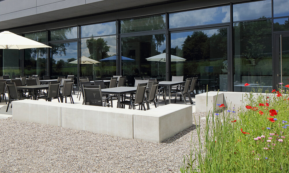 Sitzelemente bilden nicht nur einen Aufenthaltsort für eine kurze Pause, sondern dienen langfristig als Begegnungsstätte, Ruheoase und Mittelpunkt jeder Gemeinschaft. Sie tragen zur modernen Gestaltung der Außenanlage bei, können aber auch als Abgrenzung verschiedener Bereiche eingesetzt werden.