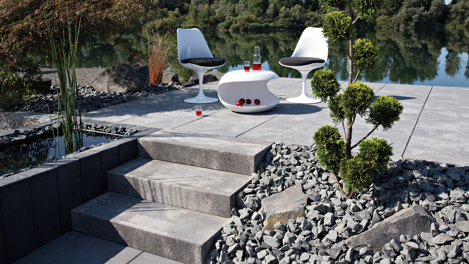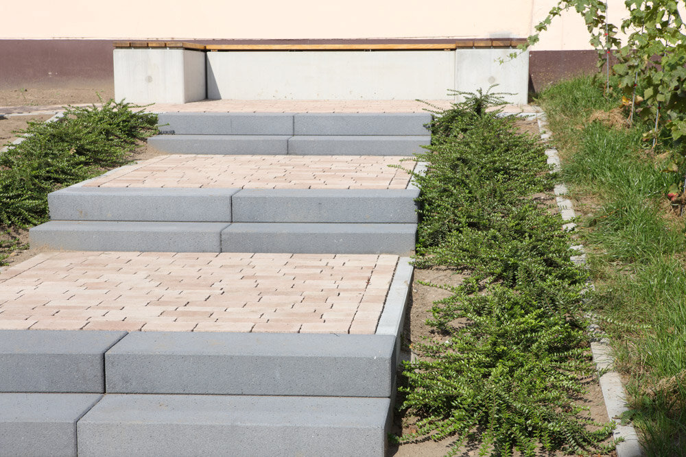 Mit Blockstufen lassen sich harmonische Übergänge zwischen Wegen und Plätzen auf unterschiedlichen Niveaus herstellen. Gestalterisch lassen sie sich je nach Wunsch kontrastreich oder harmonisch in das Konzept integrieren. In jedem Falle zeugen sie von einem hohen Gehkomfort.