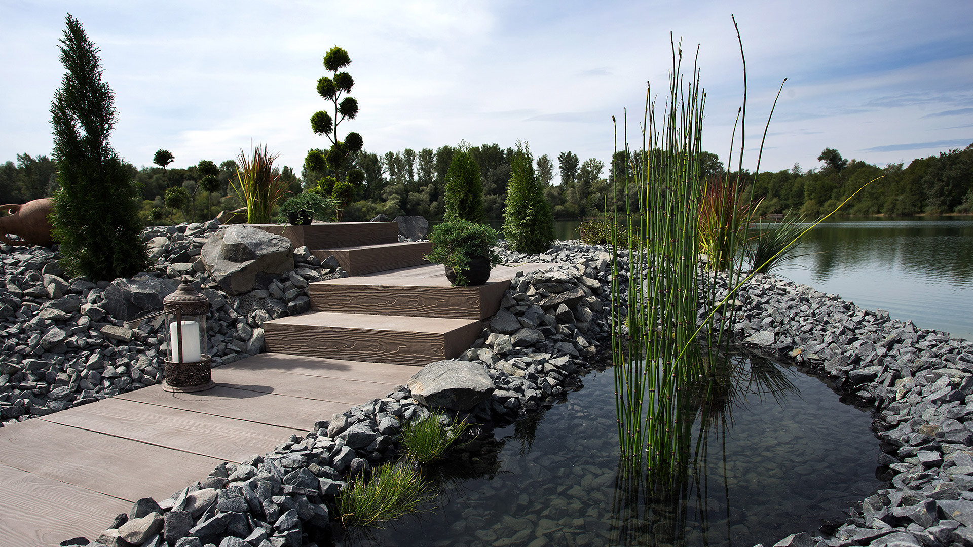 Timber Blockstufen sehen durch ihre fein gezeichnete Holzoptik dem natürlichen Vorbild zum Verwechseln ähnlich. Sie sind optisch ideal auf die Terrassenplatten Timber abgestimmt, sind aber auch alleinstehend ein wahrer Hingucker. Die seitliche Ausbildung als zusätzliche Sichtfläche macht auch einen freien Einbau ohne Probleme möglich.