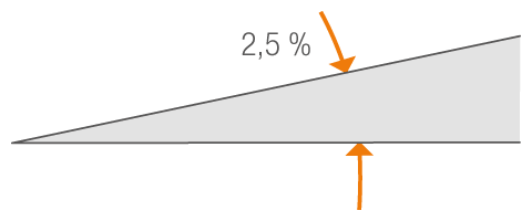 Die Oberfläche des Planums ist zu entwässern. Dabei ist das Gefälle mit mindestens 2,5 %, bei wasserempfindlichen Böden mit mindestens 4 % auszuführen.
