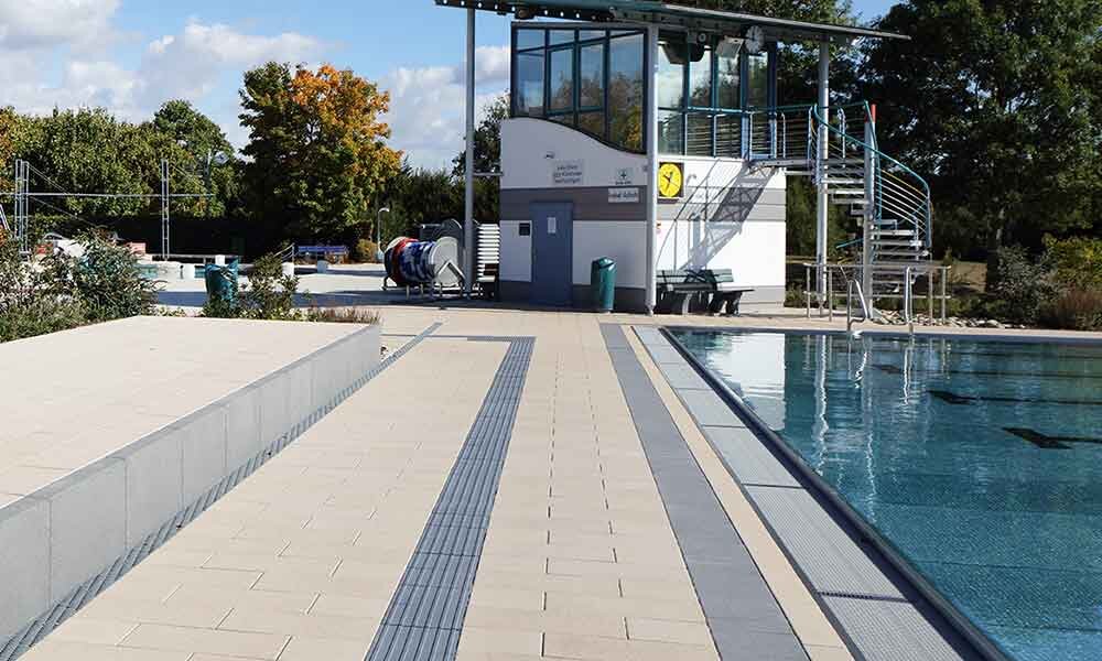 Das große Areal des Freizeitbads bietet auf einer Fläche von mehr als 3000 m² je nach Lust und Laune Ruhe und Entspannung aber auch Spaß und Action. Das Freibad mit Wellenbad und Strömungskanal ist ganzjährig geöffnet. Besonders wertwoll ist die behindertengerechte Einrichtung. Ein mobiler Lift ermöglicht einen Einstieg in die Wasserbecken und auch die Umkleidekabinen sind barrierefrei ausgebildet.