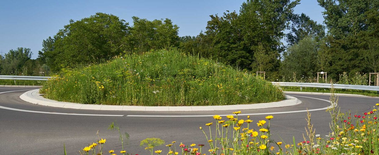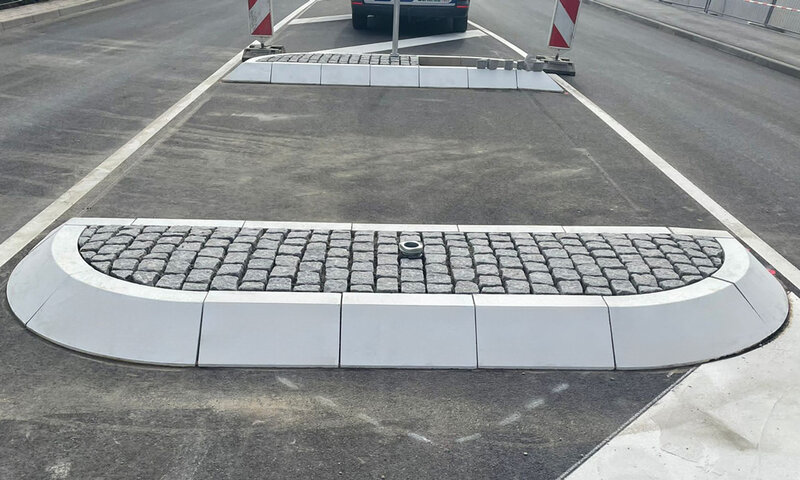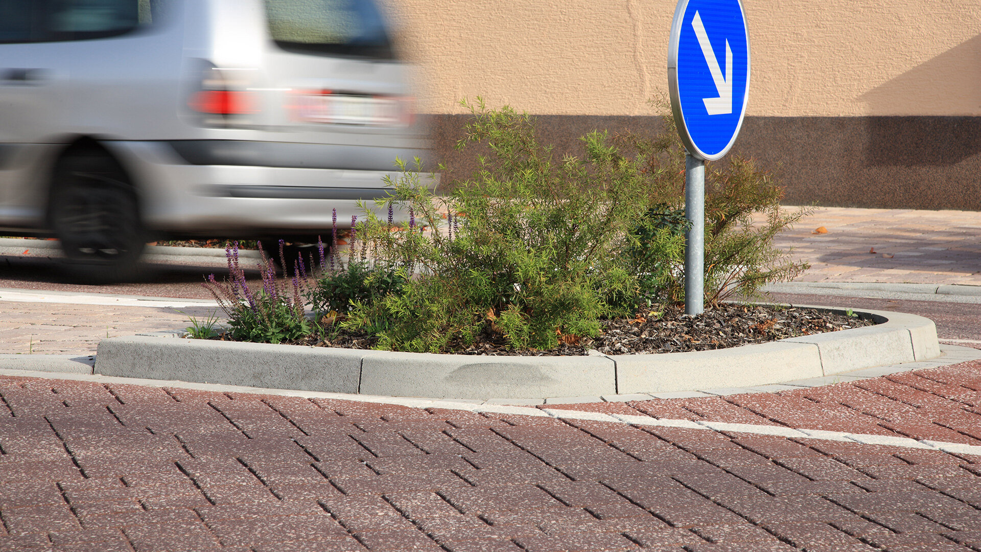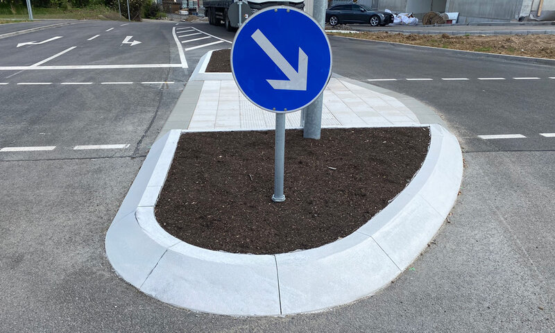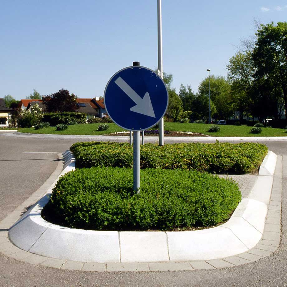 Flachbord LP Fix ermöglicht zahlreiche Linienführungen beim Bau von Verkehrsinseln und Kreiseln. Die Basis hierfür ist das umfangreiche Standard-Sortiment.