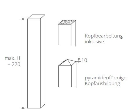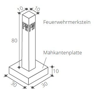 Sonderpfeiler sind beliebte Elemente zur Begrenzung von Flächen und Nutzungsbereichen. Sie haben im Standard einen quadratischen Querschnitt bis max. 40 cm bei variabler Höhe bis 220 cm. Markierungssteine werden als Feuerwehrmerkstein eingesetzt. Beide Elemente werden nach individuellen Vorgaben gefertigt.