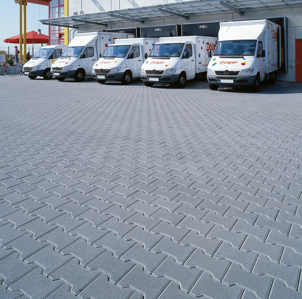 Der H-Verbund ist der Klassiker unter den Verbundsteinen. Kennzeichnend ist die Doppel-T-Form, die für eine Verzahnung benachbarter Steinreihen sorgt und so eine hohe Sicherheit vor Deformationen bietet. Die Verlegung des H-Verbunds hat vorzugsweise quer zur Fahrtrichtung zu erfolgen.
