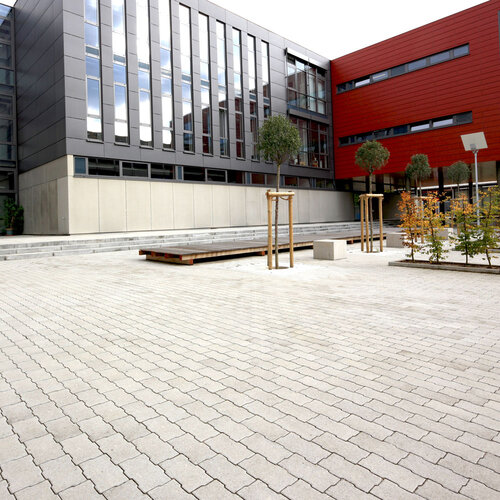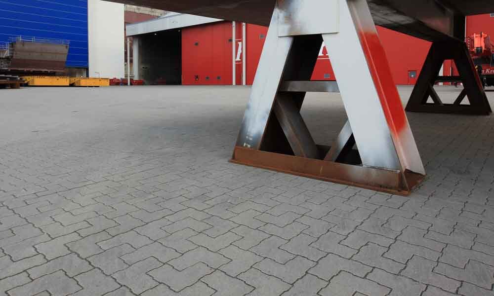 Die Steingeometrie und das seitliche Abstandhaltersystem erzeugen eine sehr hohe Verbundwirkung und sichern vor Verschiebungen. Schubkräfte, die durch Fahr- und Bremsbeanspruchungen entstehen, werden optimal aufgenommen. Die Lieferformation ist für die maschinelle Verlegung mit Vermeidung durchlaufender Fugen optimiert.