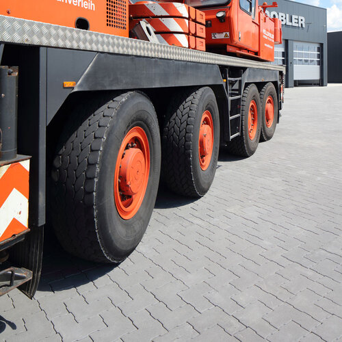 Das Pflastersystem System 17,8-LP5 überzeugt mit hoher Belastbarkeit in Kombination mit zahlreichen Gestaltungsmöglichkeiten. Eine Besonderheit ist die 5-fache Verschiebesicherung, die aus dem Abstandhaltersystem an den vier Seitenflächen und einer effektiven unterseitigen Profilierung gebildet wird. Die Profilierung führt zu einer Verkrallung der Steine mit der Pflasterbettung, die hohe Widerstandskräfte gegen Schub- und Drehkräfte entwickelt und eine große Flächenstabilität sichert.