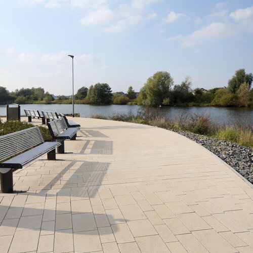 Moderne Einfassungen mit definierter Linienführung gelingen mit den Cubo Palisaden. Die Rechteckpalisaden überzeugen mit streng geometrischer Formgebung und allseitig minimaler Faskante. Sie können mit einer Versetzlänge von 12 cm oder 18 cm verarbeitet werden.
