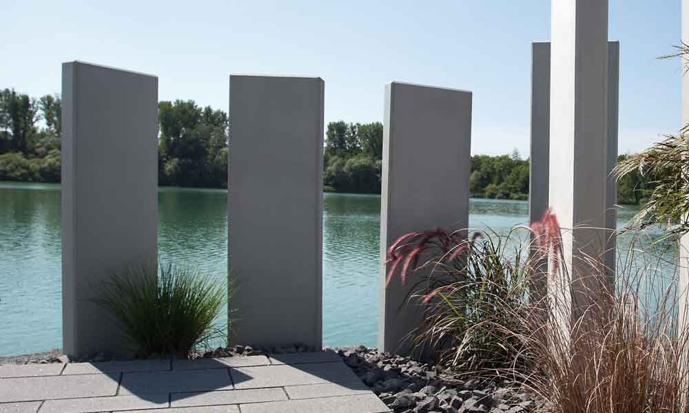 Stelen sind freistehende Elemente zur Gliederung von Freiräumen oder zum Einsatz als Sichtschutz. Mehr und mehr dienen sie auch schlicht als Designobjekte. Stelen sind mit einer konstruktiven Bewehrung versehen, dürfen jedoch nicht als Hang- oder Böschungssicherung eingesetzt werden.