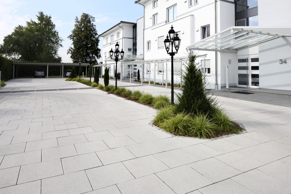 Zeitlose Eleganz wird bei Pasand Platten mit hohem Gehkomfort vereint. Die Oberfläche enthält wertvolle Natursteinsplitte, die in einem Veredelungsverfahren, dem Kugelstrahlen, freigelegt werden. Im Ergebnis wird eine gut begehbare, ebene Fläche erreicht, die insbesondere durch eine hohe Rutschfestigkeit punktet. Fünf verschieden große Formate sorgen für einen großen Gestaltungsfreiraum.
