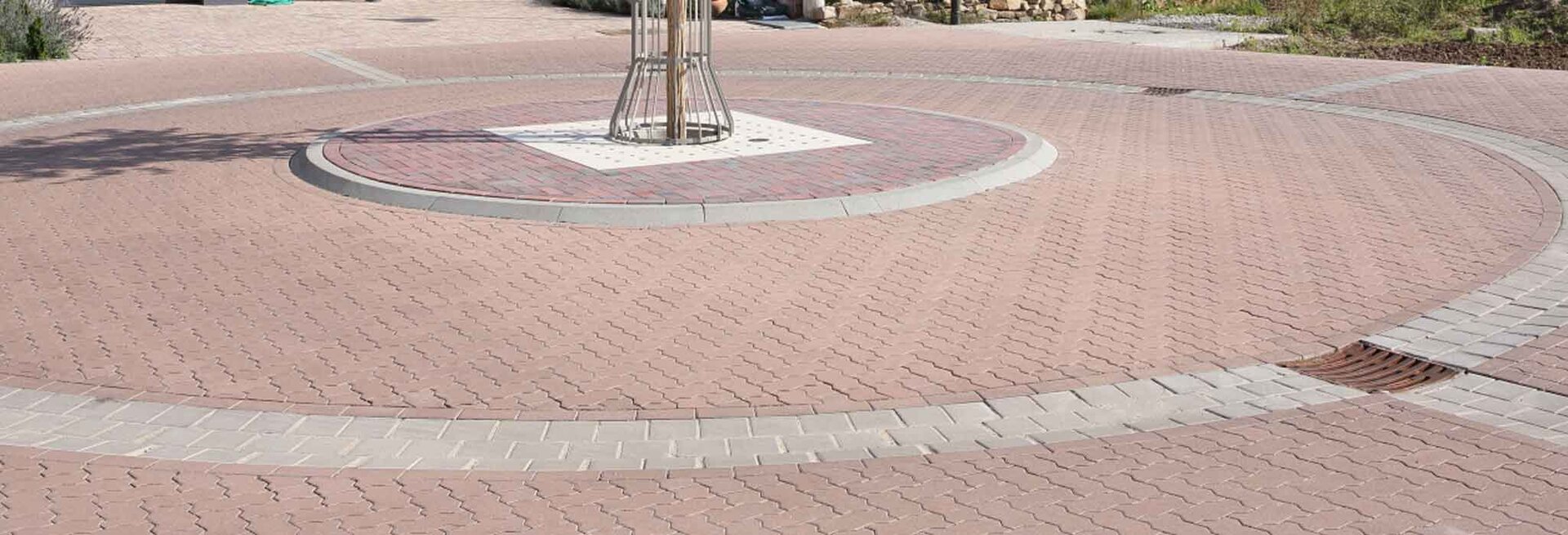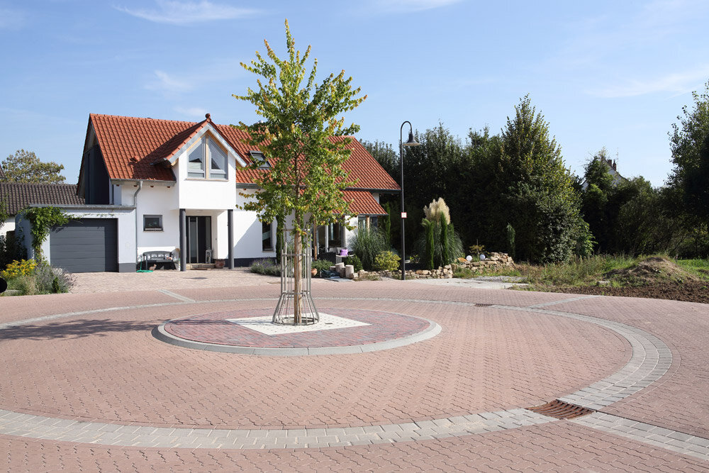 - Seitlich flächige Abstandhalter ermöglichen den Anschluss beliebiger Pflastersysteme