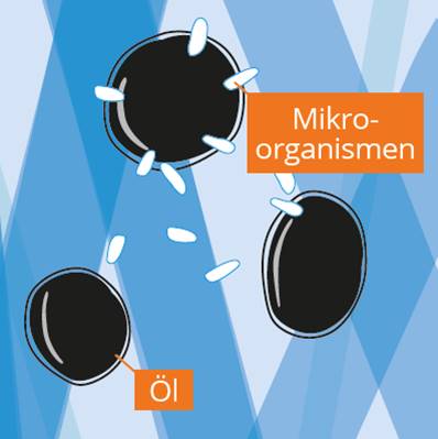 Die systematische Verteilung eines natürlichen Wachstumsaktivators lässt die Anzahl der Mikroorganismen rasch ansteigen – für einen schnelleren Abbau der Kohlenwasserstoffe. Die untere weiße Schicht speichert Wasser, um die Feuchtigkeit aufrechtzuerhalten, die die Mikroorganismen zum Leben brauchen |