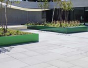 Für ein stimmiges Gesamtbild kann die Titania Terrassenplatte nahtlos mit Randplatten und Treppenstufen kombiniert werden.