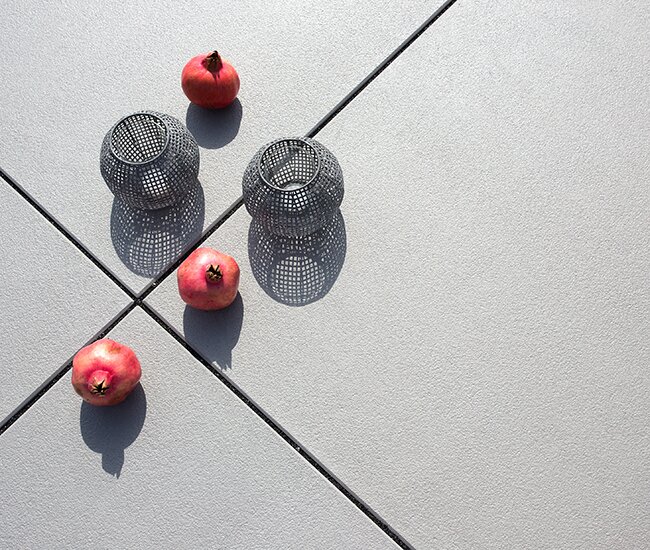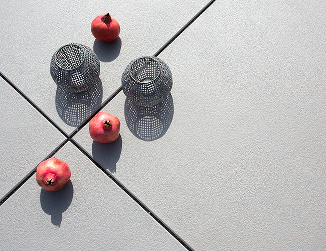 Unsere innovative Produktlinie Titania vereint Großzügigkeit und Modernität mit exklusiven Formaten. Jedes Produkt der Linie entsteht dabei aus dem speziellen und recht aufwändigen Verfahren der Gießbetonherstellung, WetCast genannt. Dabei wird hochwertiger selbstverdichtender Beton in Form gegossen, sodass keine abstehenden Enden, Schnittstellen oder andere Unebenheiten entstehen. Dank der geradlinigen Konturen und der schlichten, aber stilvollen Optik eignen sich die Titania Terrassenplatten vor allem für weitläufige Bereiche und verleihen der Fläche ein edles, puristisches Design. Die homogene Sichtbetonoberfläche der Terrassenplatten ist fein angeraut und sorgt für ein angenehmes Trittgefühl beim Auftreten, egal ob in festen Schuhen, Hausschuhen oder barfuß.