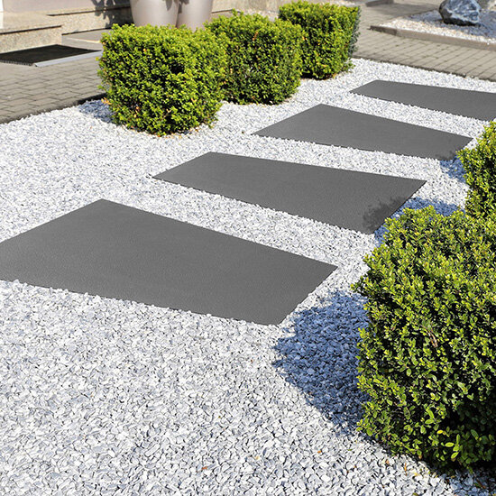 - Für ausdrucksstarke Wege oder als besonderes geschnittene Terrassenplatte