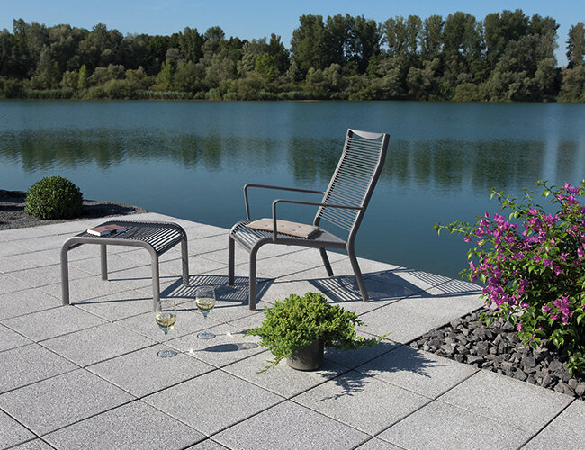 Insgesamt stehen die Nuvo Platten in 6 Farbtönen zur Verfügung, jeweils drei Tönen in grau und beige. Selbstverständlich können die einzelnen Platten auch untereinander kombiniert werden und bieten so noch mehr Möglichkeiten die Nuvo-Platten perfekt an die Gegebenheiten der eigenen Wunsch-Terrassen anzupassen. Dank des integrierten Oberflächenschutzes der Technologie b.c.s. der wie eine Imprägnierung wirkt, sind die Platten auch besonders leicht zu reinigen und sehr pflegeleicht.