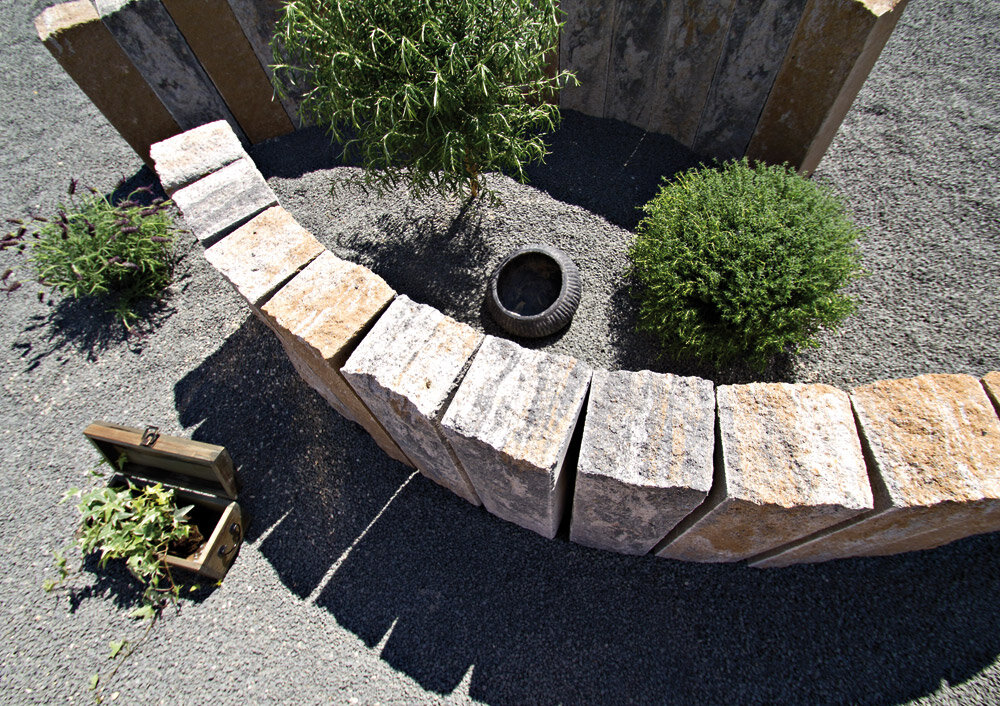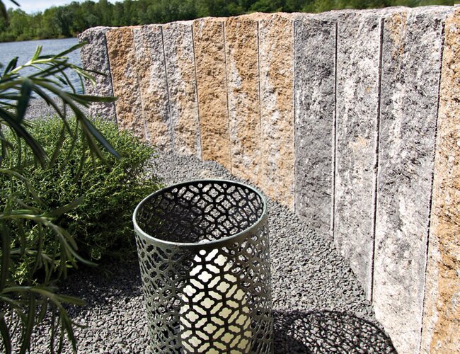Palisadensteine aus Beton mit mediterranem Flair für Terrasse und Garten in nuancierten Mischfarben.