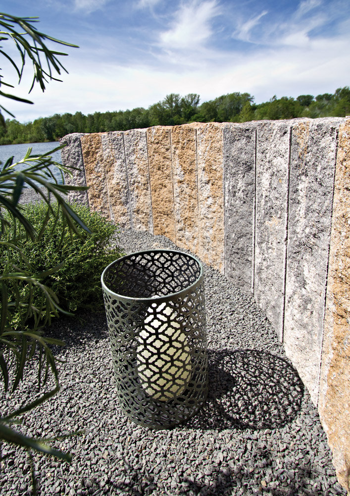 Unsere Vino Palisaden verleihen Ihrem Garten und Ihrer Terrasse ein mediterranes Flair bei dem Urlaubsstimmung aufkommt. Highlight der Steine sind die natürlich, bossierten Ansichtsflächen, auf denen die nuancierten Mischfarben besonders gut zur Geltung kommen. Insgesamt stehen zwei Farben zur Auswahl, ein heller muschelkalkmix und ein dunkles titan. Dank der vier unterschiedlichen Höhenformate können die Palisadensteine vielseitig eingesetzt werden, mit jeweils gleicher Höhe oder mit auf- bzw. absteigendem Abschluss.