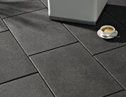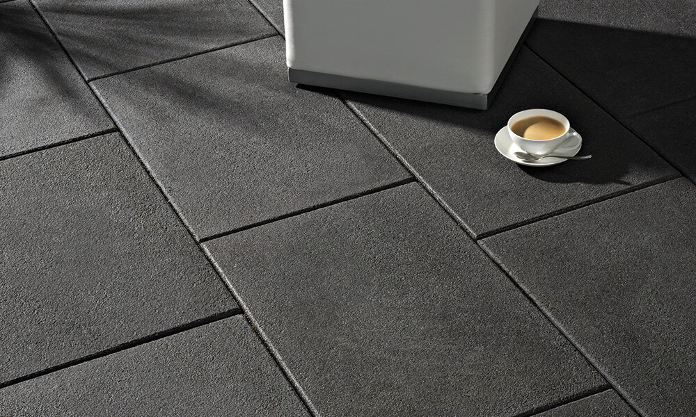 Bodenplatten für die Terrasse mit kugelgestrahlter Naturstein-Oberfläche in dezenten Farben.