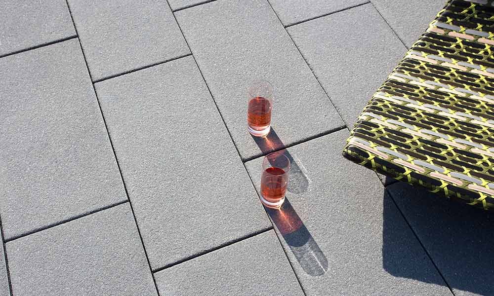Der Name der Terrassenplatten steht gleichzeitig für die Struktur der Oberfläche: Pasand, die kugelgestrahlte Naturstein-Oberfläche mit freigelegten Edelsplitten und feinen Kanten. Die Splitte werden bei dem Verfahren leicht geglättet ohne die Rutschfestigkeit oder den Gehkomfort auf den Platten zu beeinträchtigten. Mit der schlichten Eleganz der drei klassischen Farben von beige über anthrazit-grau bis schwarz verwandeln die Pasand Bodenplatten Ihre Terrasse in einen Ort zeitloser Schönheit. Dank zwei vorliegender Formate, quadratisch im Maß 40 x 40 Zentimeter und rechteckig im Maß 60 x 40 Zentimeter können unterschiedliche Verlegemuster realisiert werden.