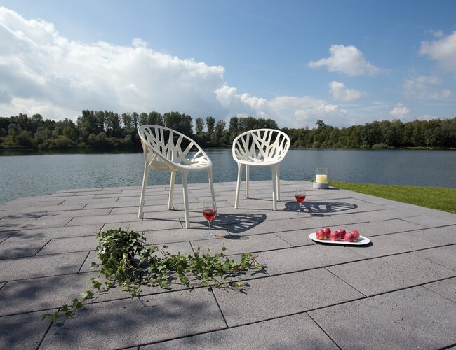 Alle mit den Vista-Steinen gepflasterte Flächen sind grundsätzlich von PKWs befahrbar. Für zusätzliche Stabilität und Nachhaltigkeit sorgt das seitlich integrierte Abstandhaltersystem. Dieses sichert die Mindestbreite der Fugen und macht die Steine versickerungsfähig. So kann Regenwasser durch die Fugen abfließen und vom Boden aufgenommen werden. Zum anderen verkanten sich die Sprossen des Abstandhaltersystems beim Verlegen der Pflastersteine und sorgen so für zusätzliche Stabilität der Fläche.
