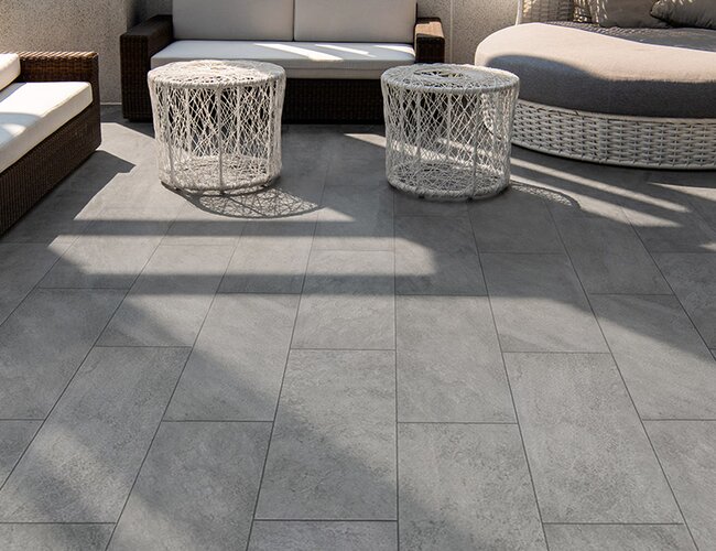Rektifizierte Keramikplatten mit hoher Rutschfestigkeit.