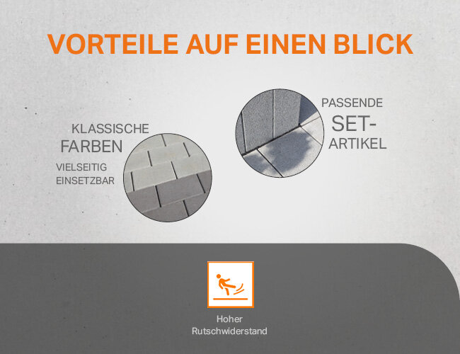 Unsere Blockstufen werden als vollmassives Bauteil geliefert und zeichnen sich durch einen besonders hohen Gehkomfort aus. Sie liegen im typischen Format von 100 / 35 / 15 und 50 / 35 / 15 Zentimeter vor und können daher vielseitig für Gartentreppen und Außenanlagen eingesetzt werden. Ihre Vielseitigkeit wird durch die klassische Farbauswahl in grau und anthrazit unterstrichen, die zu nahezu zu allen Architekturstilen harmoniert. Dank der Betonoberfläche überzeugt die Betonstufe zudem mit einem hohen Rutschwiderstand der auch bei Nässe erhalten bleibt.
