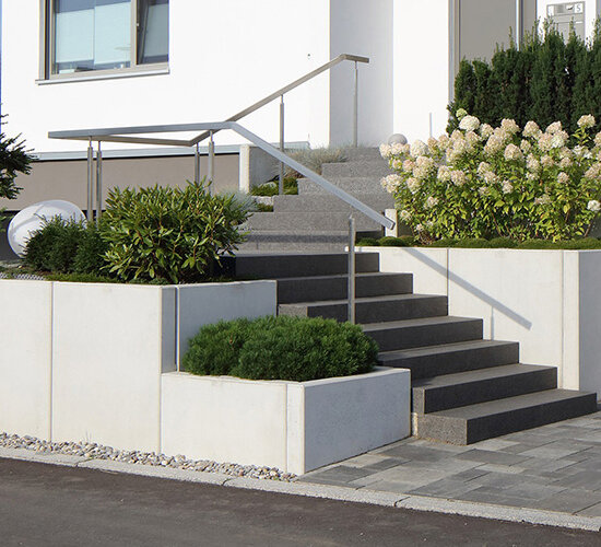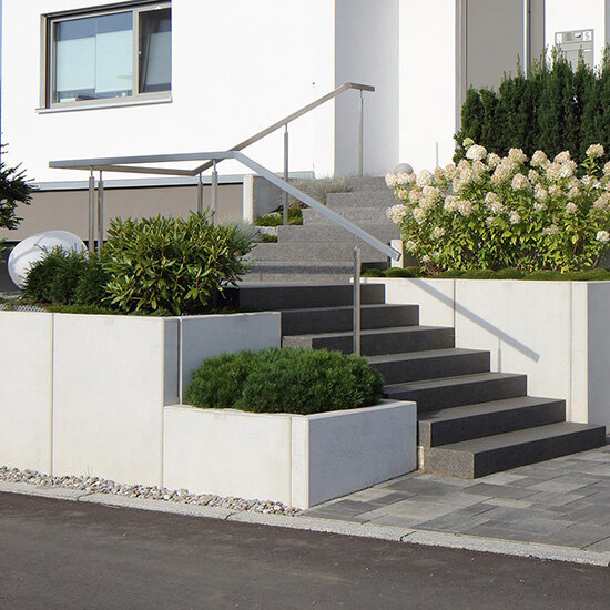 Dank ihrer optisch ansprechenden Oberfläche und des hochwertigen Sichtbetons können die Steine aber auch zur beidseitigen Ansicht gesetzt werden, beispielsweise als Mauer oder als dekorativer Sichtschutz in modern angelegten Gärten und Außenanlagen. Passende Eckstücke zu den Höhen sind auch Anfrage ebenfalls erhältlich.