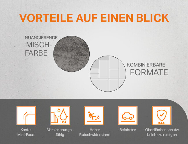 Der patentierte hocheffektive Oberflächenschutz der b.c.s.-Technologie von Lithonplus sorgt für noch längere Haltbarkeit. Er basiert auf Nanotechnologie und verbessert dank einer äußerst starken Verbindung mit der Oberfläche die Eigenschaften der Betonsteine, vollkommen ohne Chemie, sondern ökologisch und gesundheitlich unbedenklich. Alle Steine, die mit der b.c.s.-Technologie behandelt werden sind noch langlebiger und weniger anfällig für Verschmutzungen, ohne, dass dabei das Aussehen der Steine beeinträchtigt wird.