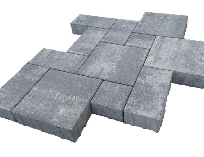 Pflasterstein Formatmix aus 3 Steingrößen in harmonischen Farbvarianten.