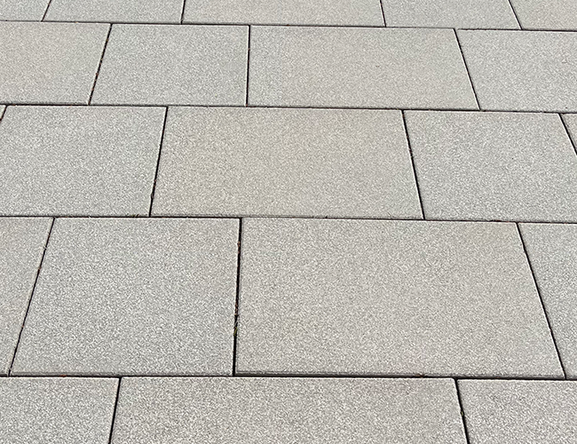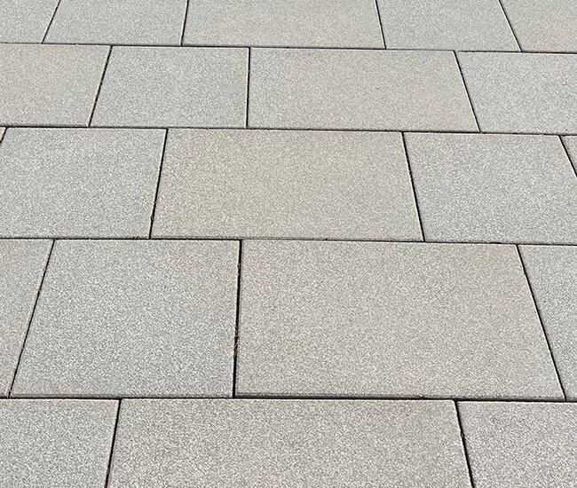 Zeitlos harmonisch abgestimmte Terrassenplatten in grau und beige.