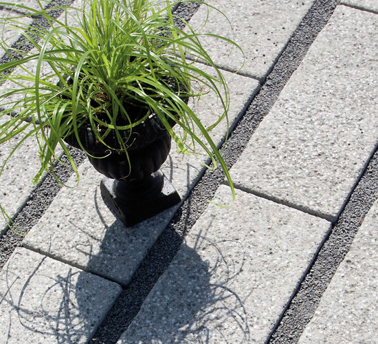 Die Vista Green ist die Königsklasse der nachhaltigen und ökologischen Pflastersteine. Kernstück des Pflastersystems sind linear längs verlaufenden Fugen. Mit einer Mindestbreite von 2,5 cm brechen Sie die gepflasterte Fläche in regelmäßigen Abständen auf und garantieren so eine der besten Versickerungsleistungen für Regenwasser. Je nach persönlichem Geschmack können die Fugenräume dann mit Split befüllt oder direkt begrünt werden. Daher eignet sich die Vista Green besonders für Höfe, Park- & Stellplätze die befahrbar sein sollen, aber deren Fläche auch nicht versiegelt werden sollen. Das macht die Vista Green zum Star der wasserdurchlässigen Pflastersteine.