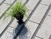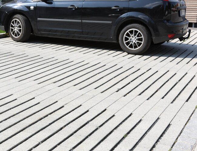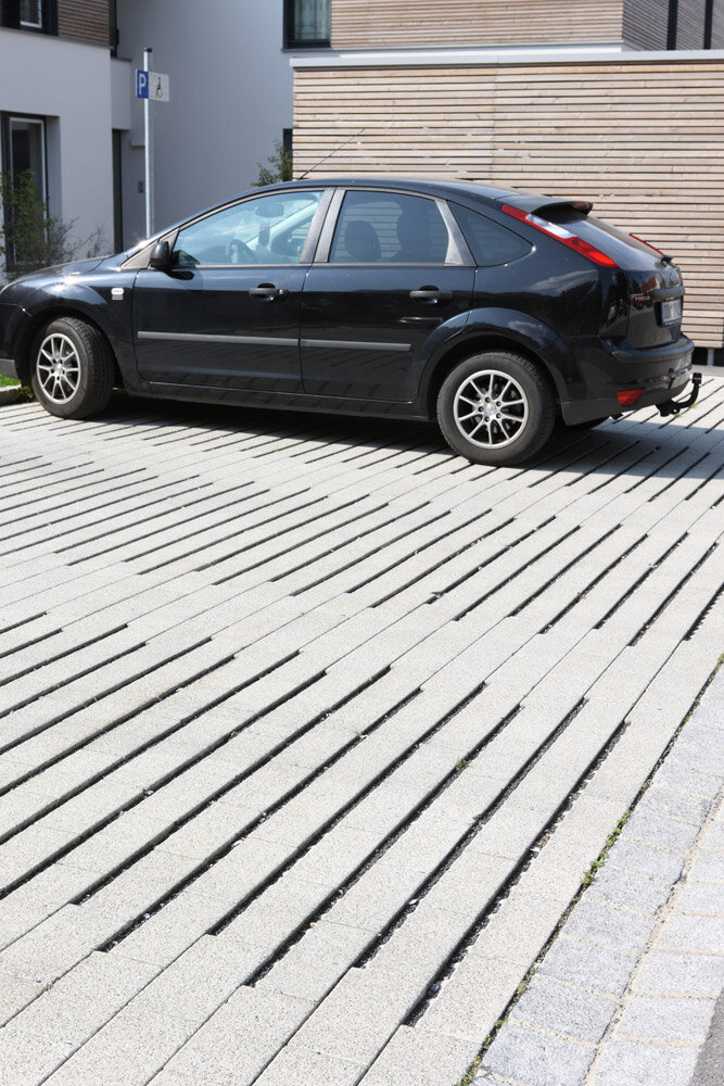 Die Vista Green ist die Königsklasse der nachhaltigen und ökologischen Pflastersteine. Kernstück des Pflastersystems sind linear längs verlaufenden Fugen. Mit einer Mindestbreite von 2,5 cm brechen Sie die gepflasterte Fläche in regelmäßigen Abständen auf und garantieren so eine der besten Versickerungsleistungen für Regenwasser. Je nach persönlichem Geschmack können die Fugenräume dann mit Split befüllt oder direkt begrünt werden. Daher eignet sich die Vista Green besonders für Höfe, Park- & Stellplätze die befahrbar sein sollen, aber deren Fläche auch nicht versiegelt werden sollen. Das macht die Vista Green zum Star der wasserdurchlässigen Pflastersteine.