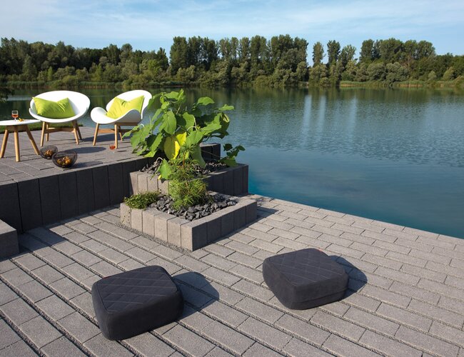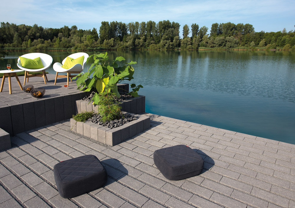 Insgesamt stehen drei Grautöne mit unterschiedlicher Beton-Oberfläche zur Auswahl. Typisches steingrau mit klassischer Cassero Oberfläche oder helles achatgrau bzw. dunkles sophistograu mit kugelgestrahlter Pasand Oberfläche. Beide Pasand-Varianten verfügen auch über den hochwertigen b.c.s.-Oberflächenschutz, der dank seiner schmutzabweisenden Eigenschaften den Reinigungsaufwand der Pflastersteine auf ein Minimum reduziert.