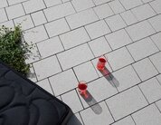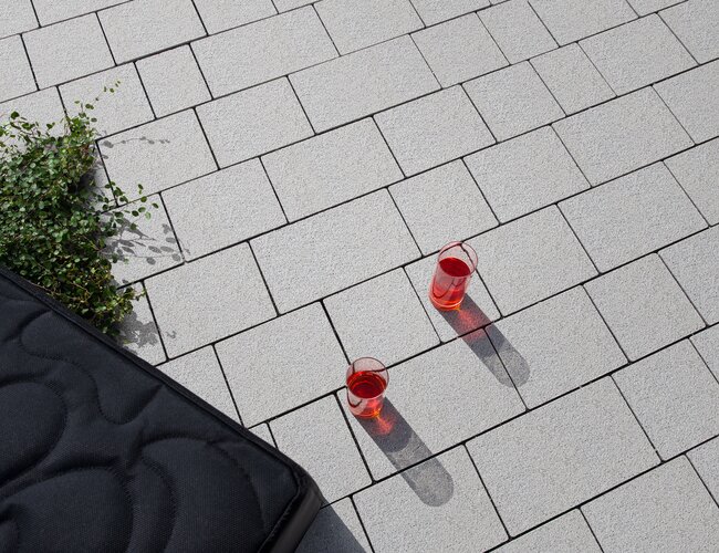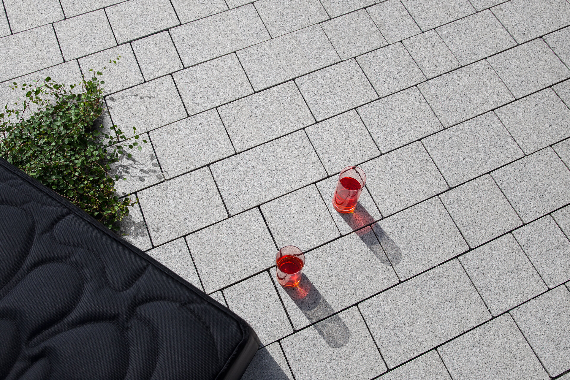 Die Formatkombination aus vier ausgewogenen Steingrößen schafft lebendige Flächen. Die moderne Geradlinigkeit der Formate wird durch die scharfe Kantenführung betont. Ein seitliches Abstandhaltersystem dient als Verschiebesicherung und sorgt für eine hohe Flächenstabilität. Das System ist in edler kugelgestrahlter Natursteinoberfläche oder als klassische Betonfläche mit harmonischen Mischfarben erhältlich.