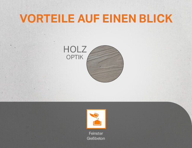 - Hoher Gehkomfort auch beim Barfußlaufen dank WetCast Betonoberfläche